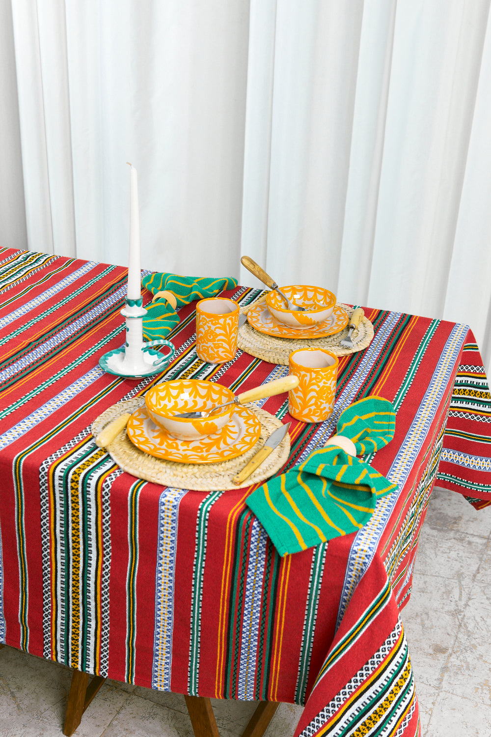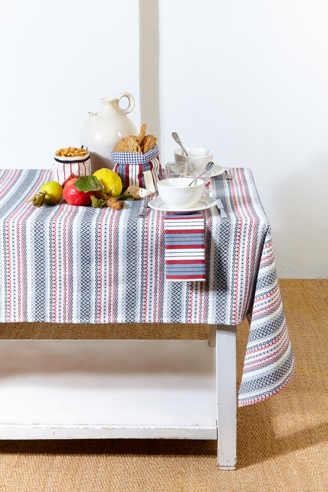 En Eturel contamos con manteles confeccionados artesanalmente en nuestro taller de Madrid. Para ello, y mediante técnicas de costura típicas, usamos tejidos tradicionales de diferentes puntos de la geografía popular española.